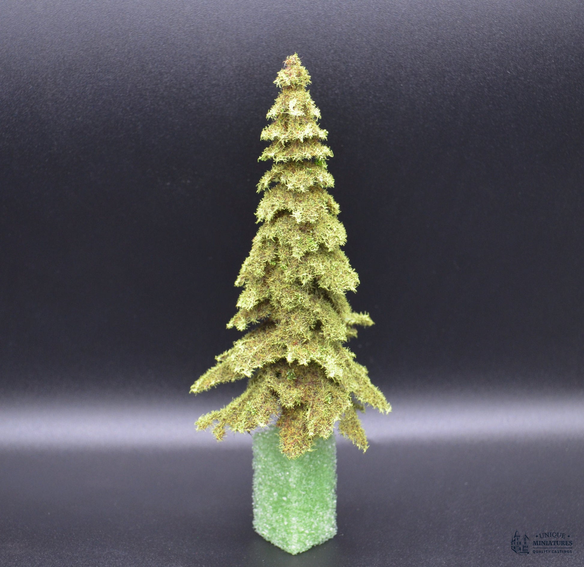 This miniature Appalachian Green Spruce Tree works perfectly in any outdoor miniature or dollhouse build. It comes with a spiked base so it can be easily installed in a variety of bases. The tree measures 6" Tall x 2 1/2" Wide x 2 1/2" Deep.