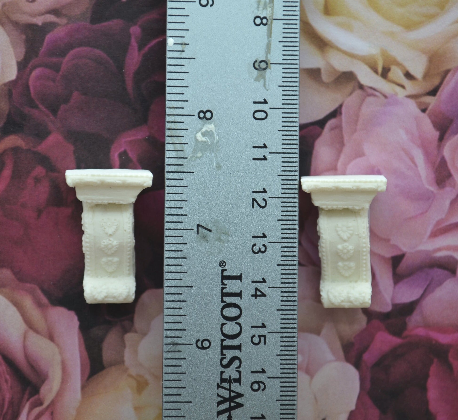 These tiny, elegant shelf brackets are the perfect finish for any miniature or dollhouse wall. These brackets come in a set of two (2) and measures 3/4"W x 3/4"D x 1 1/4"H.