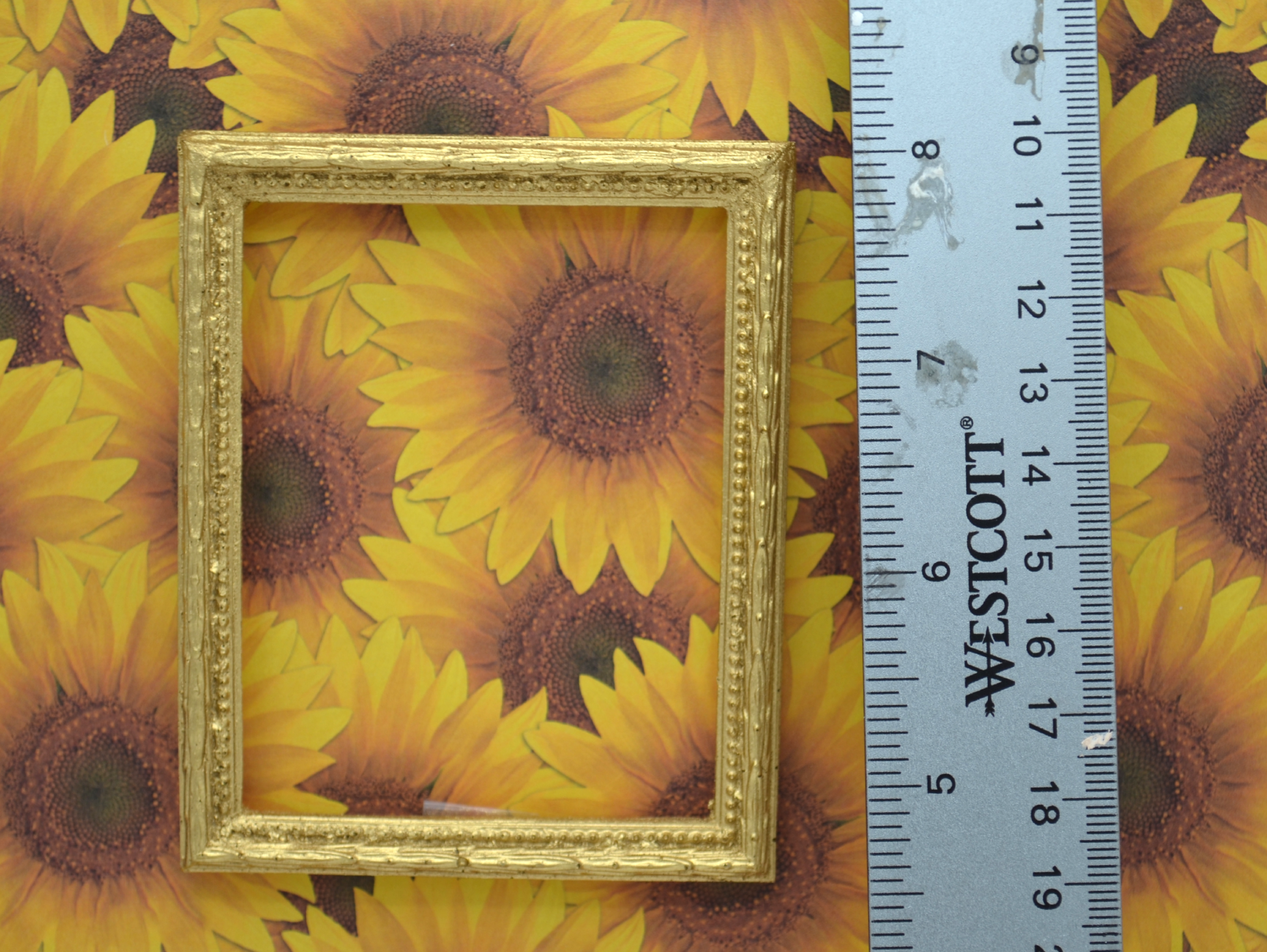 This gilded miniature drapery frame is the perfect complement to any small piece of art or photograph. The full piece measures 3" x 3 3/4" on the outside and 2 1/4" x 3" on the inside.