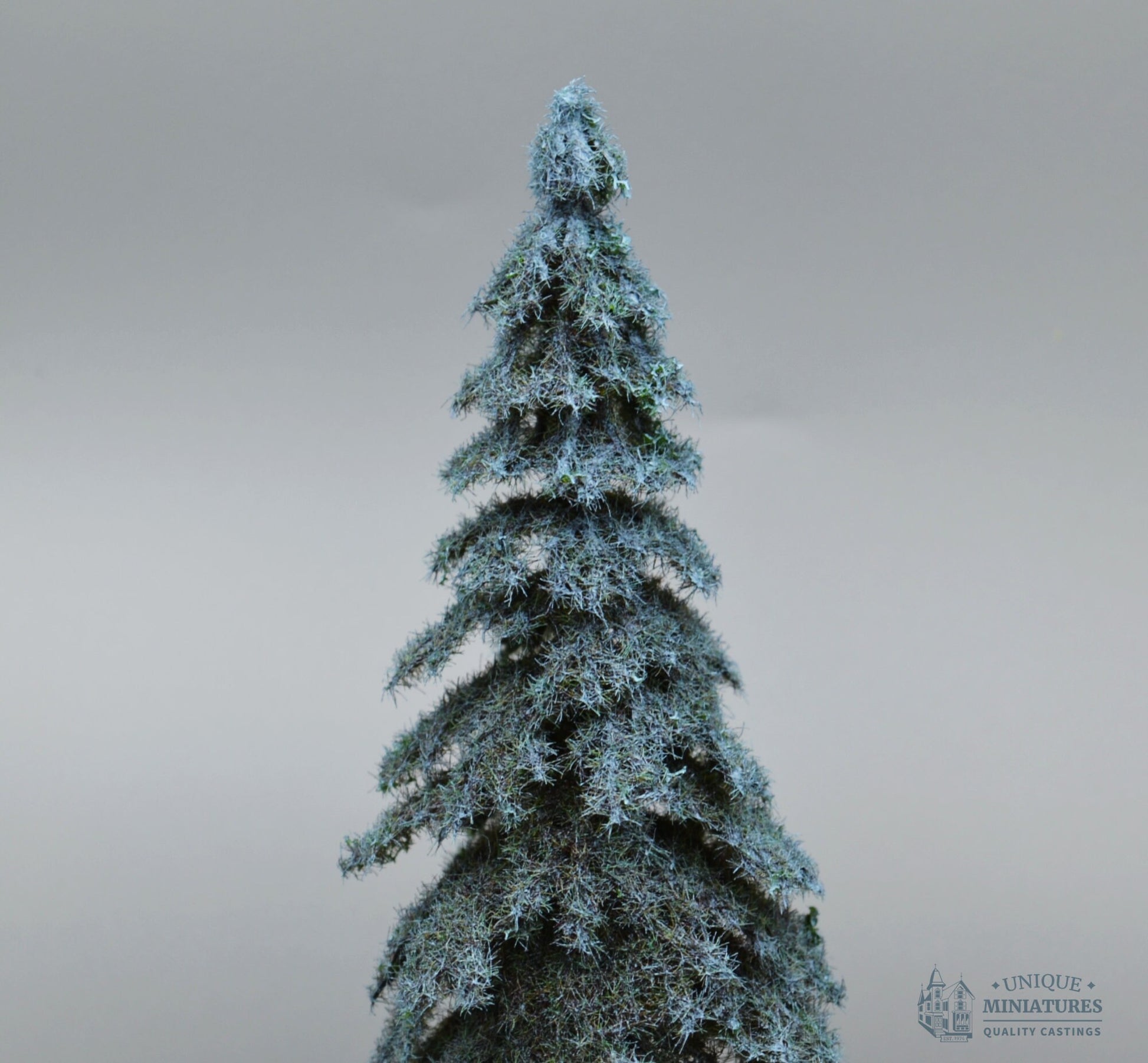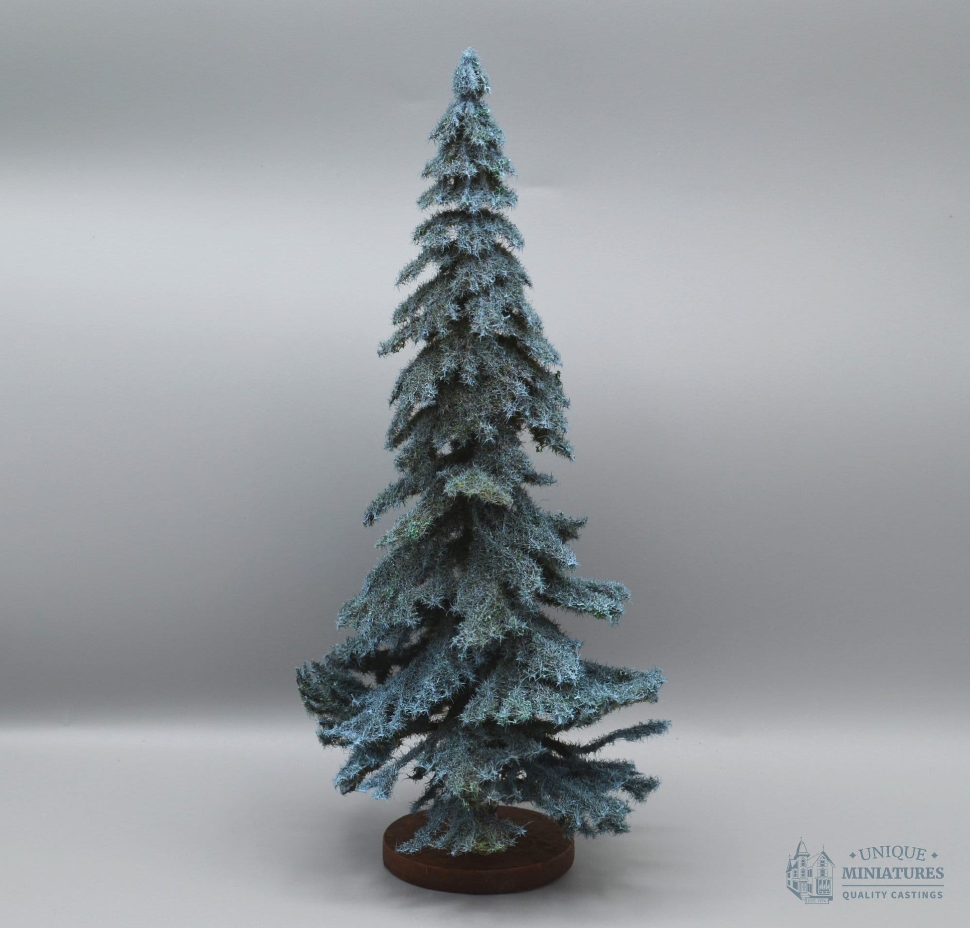 This miniature Blue Spruce Tree works perfectly in any outdoor miniature or dollhouse build. It comes on a rounded wood base. The tree measures 8" Tall x 4" Wide.