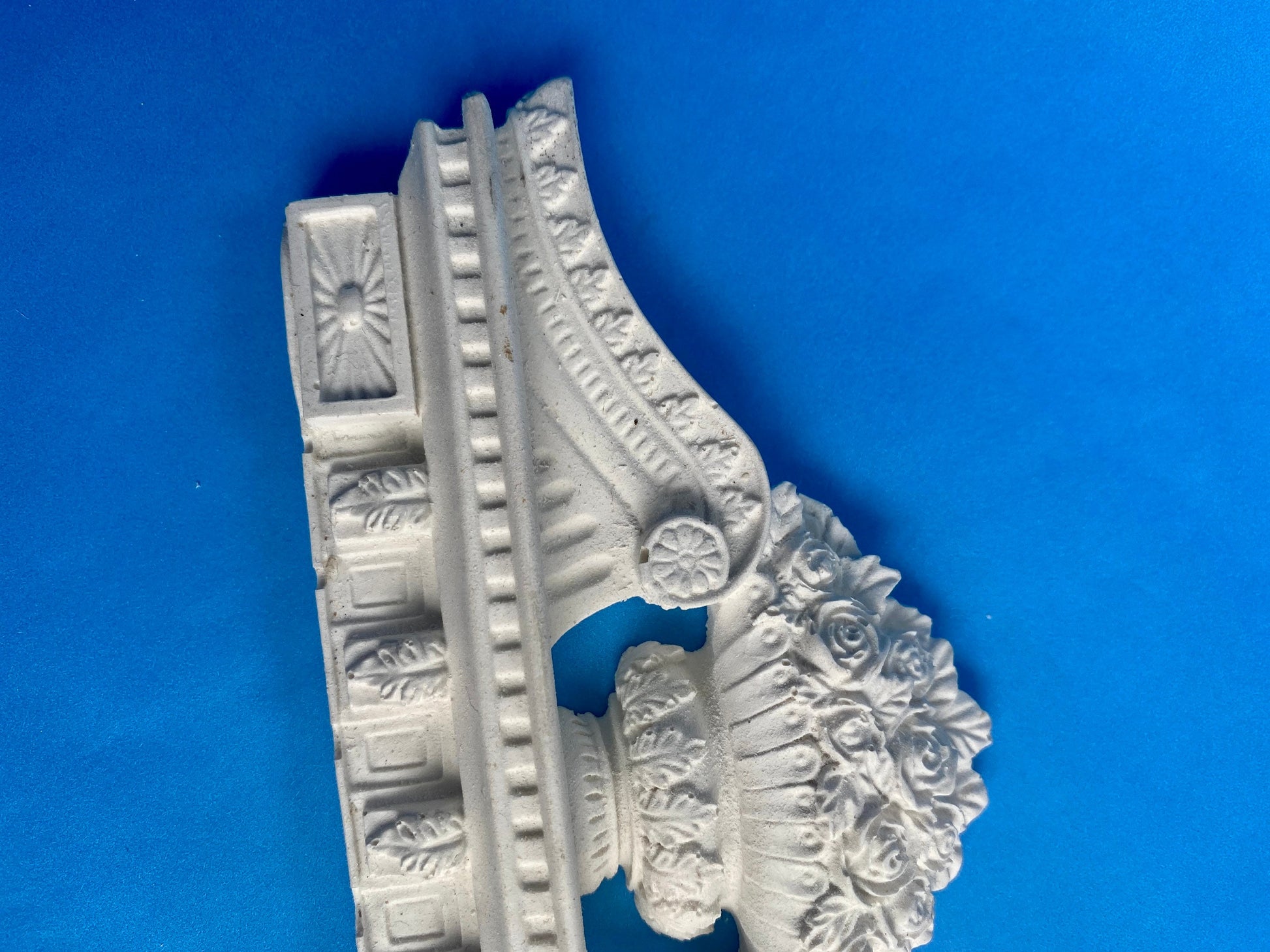 Gorgeous, intricately detailed trim tops a window or doorway. Features bouquet of flowers, leaves, and dentil molding, and measures 6 1/8” wide x 2 3/4”.