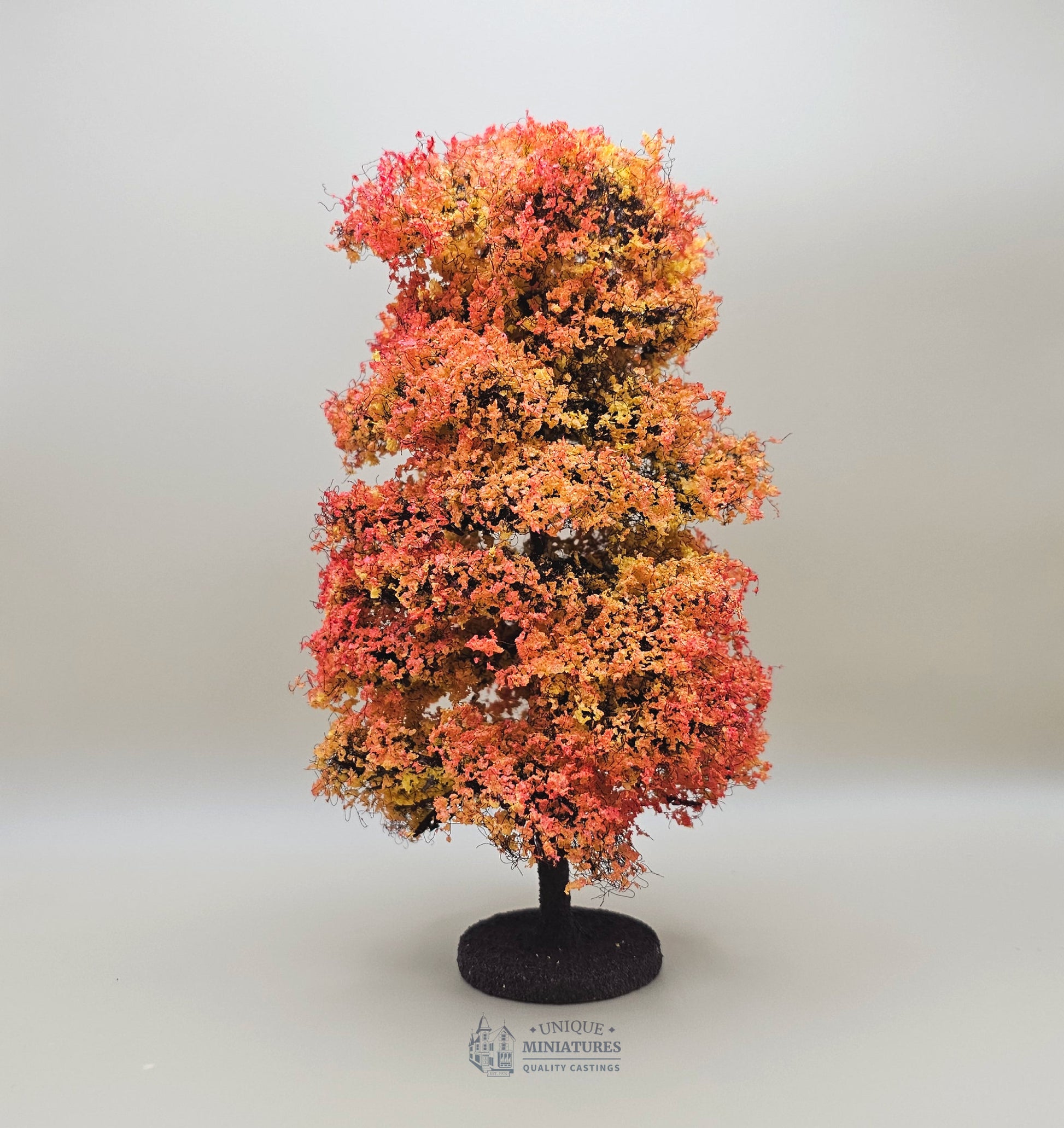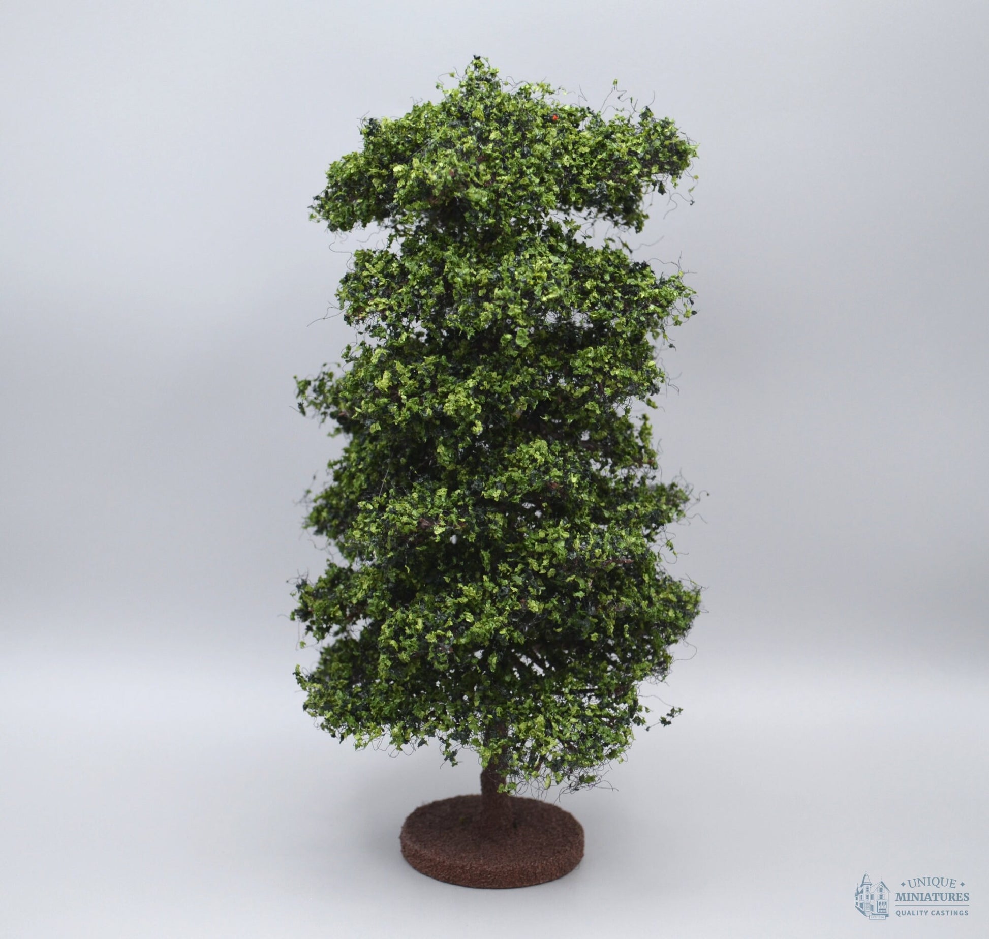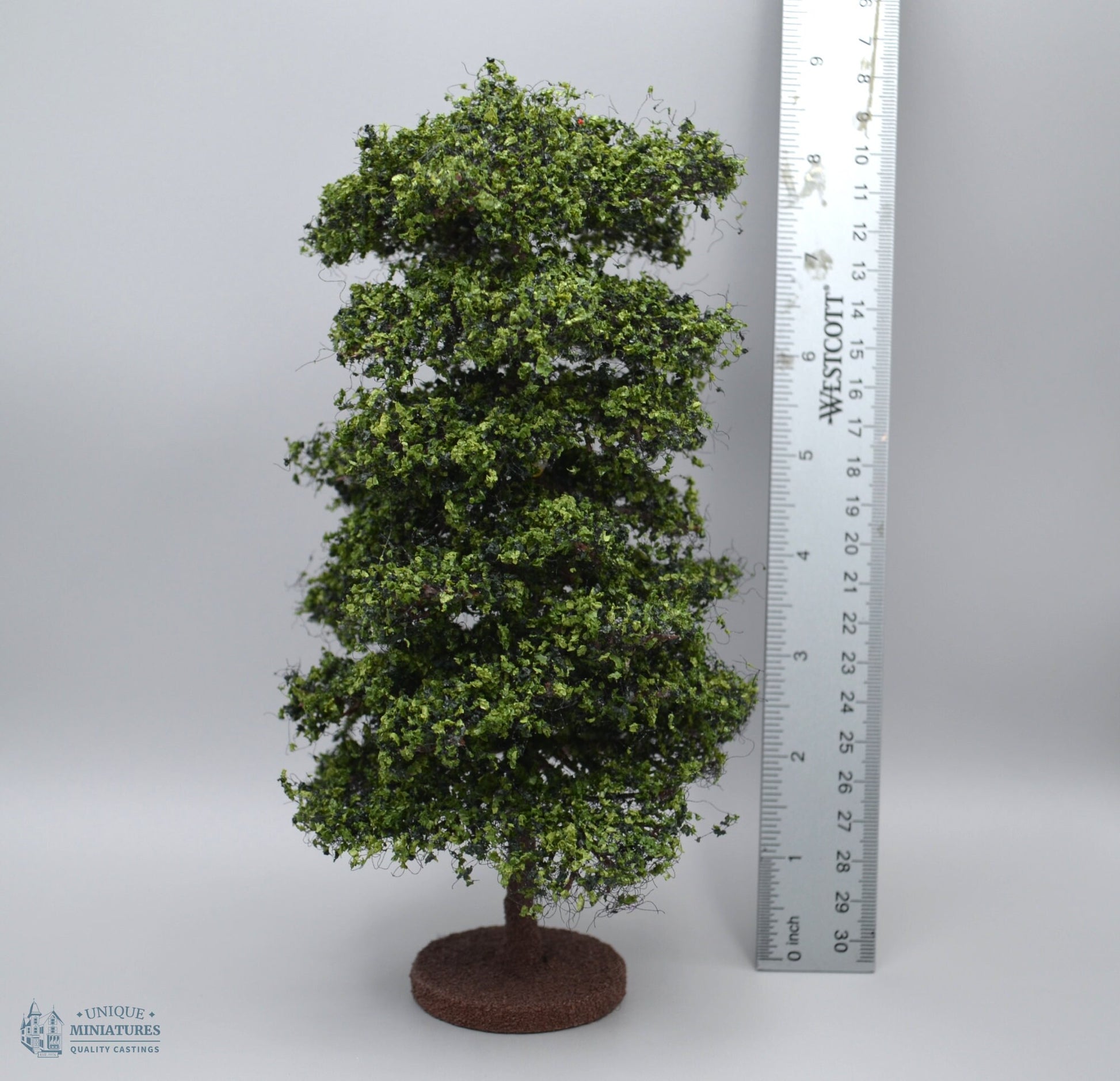 This miniature elm tree works perfectly in any outdoor miniature or dollhouse build. It comes with a rounded base. The tree measures 8" tall x 4 1/2" wide x 4 1/2" deep.