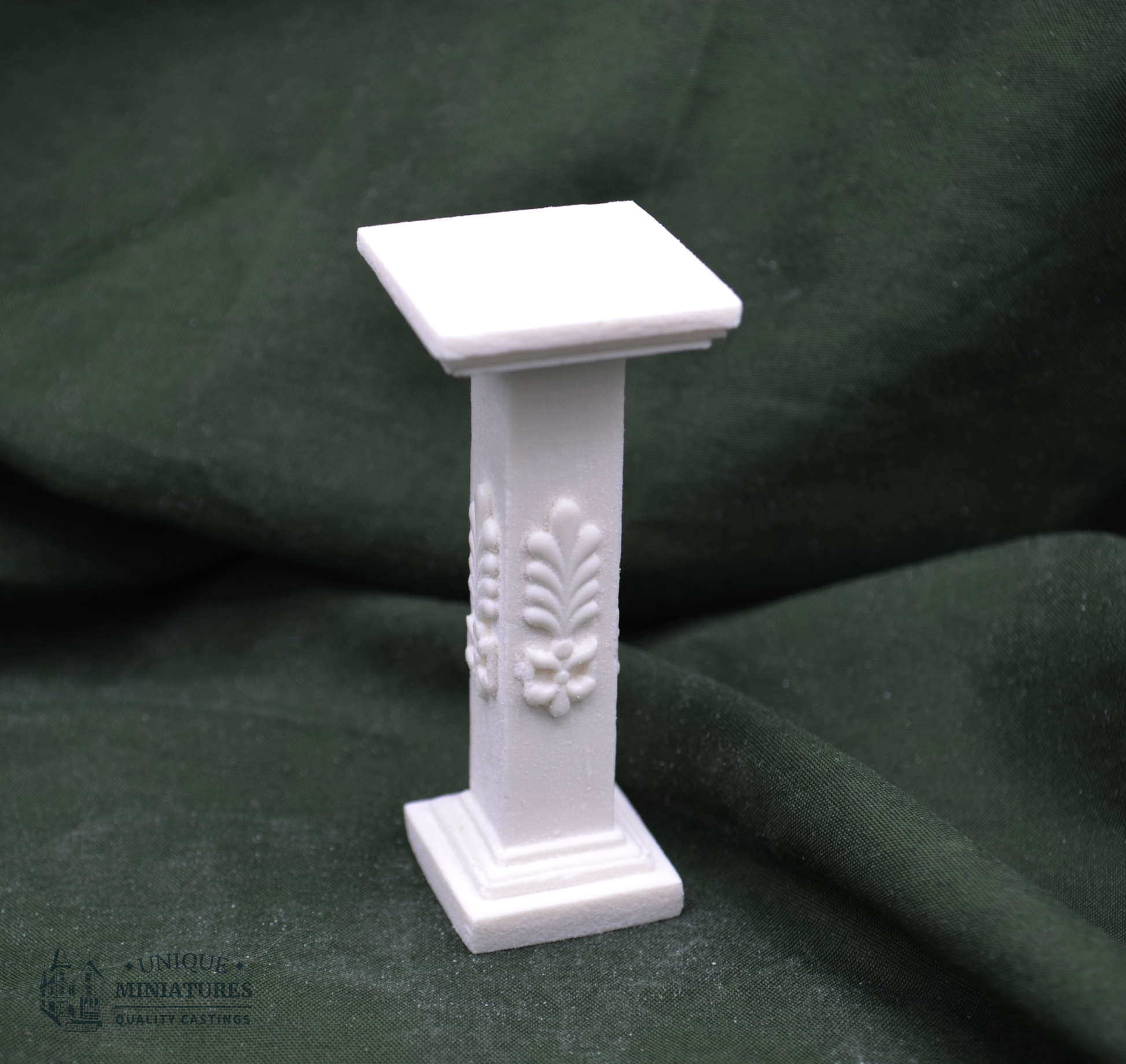 This classical pedestal is a great addition to any dollhouse or miniature. This piece measures 3" tall and 1" wide.