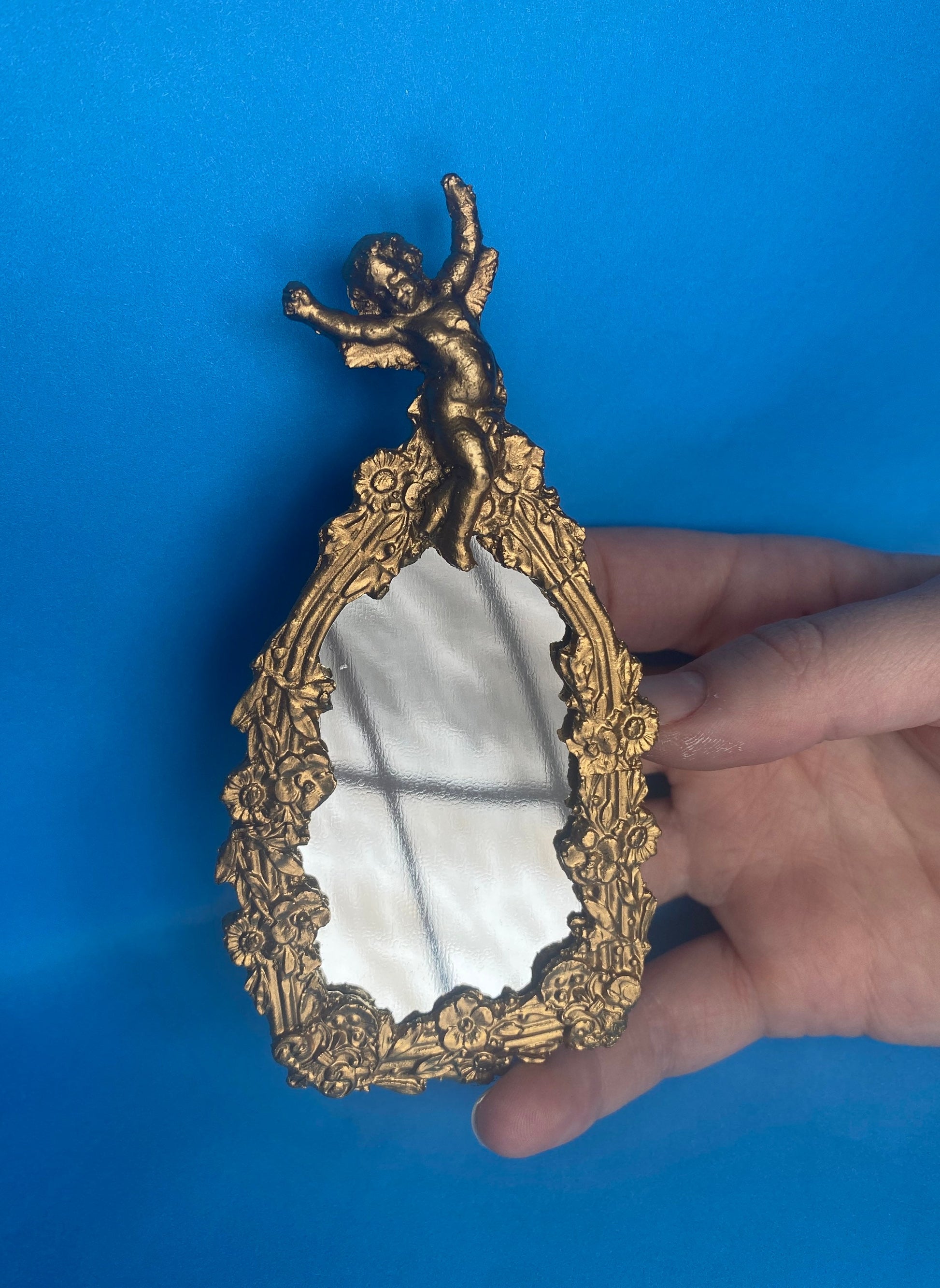 Golden Cherub Mirror | 2 1/2” x 5" | Ornamentation for Dollhouse Miniatures