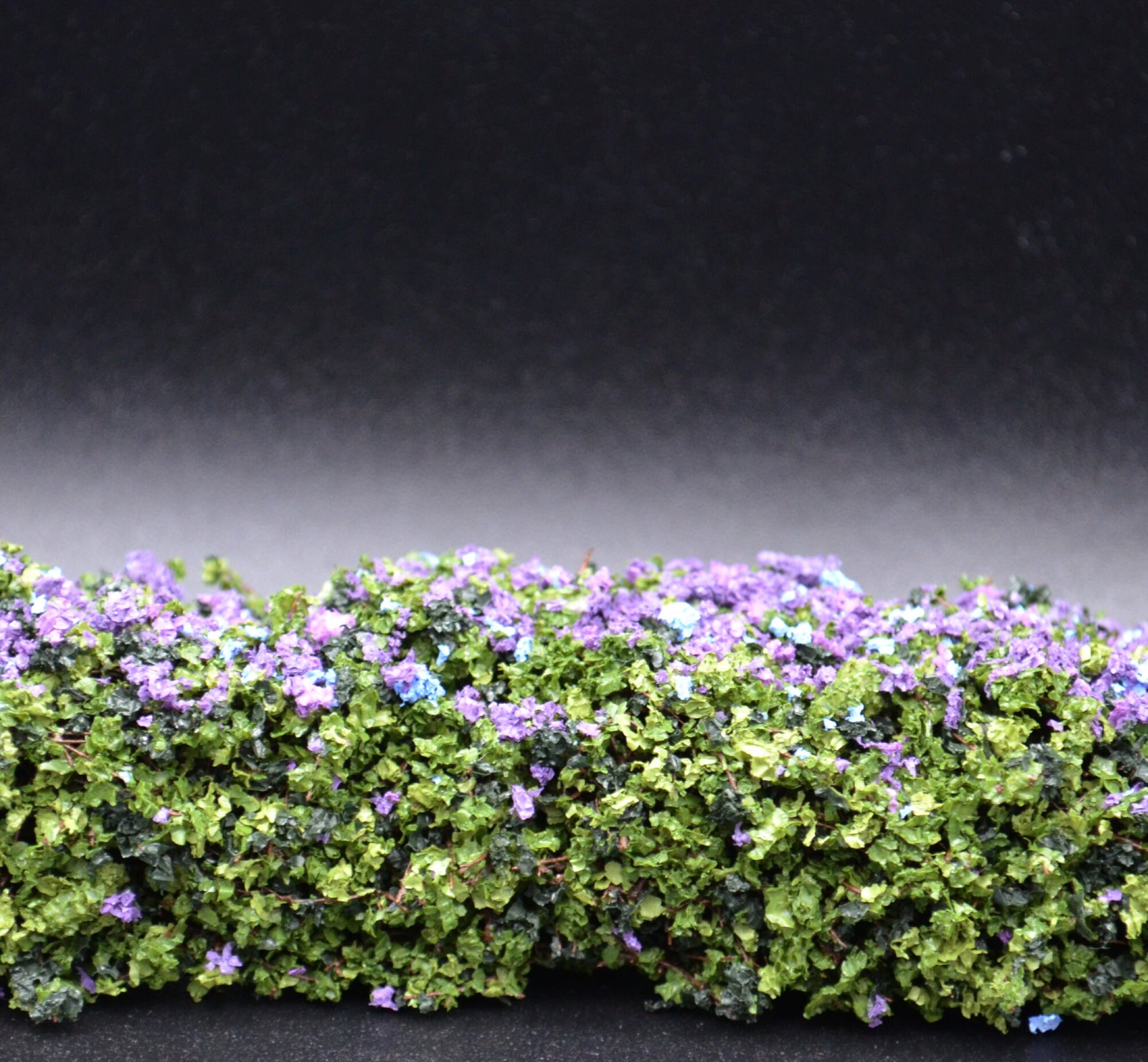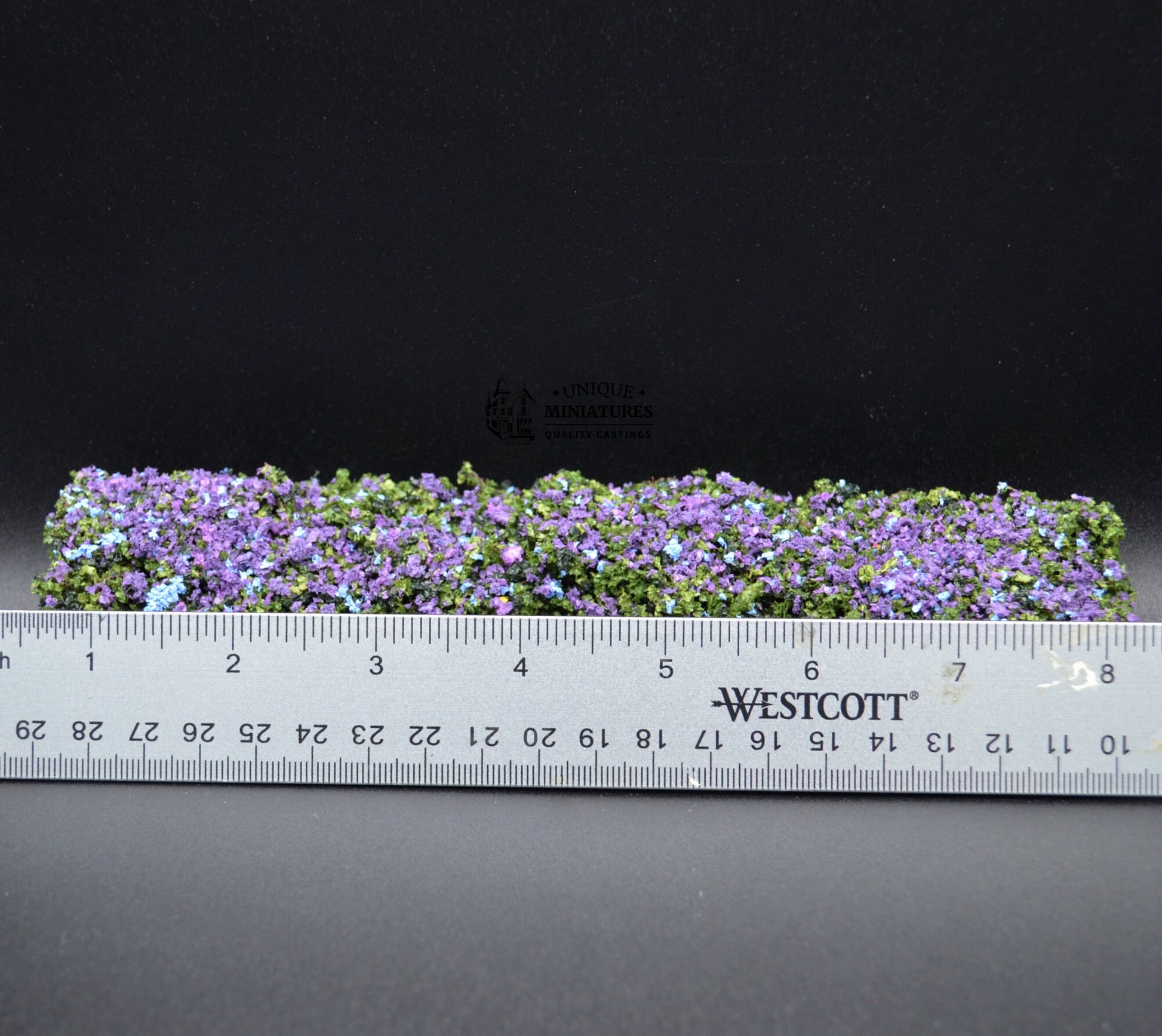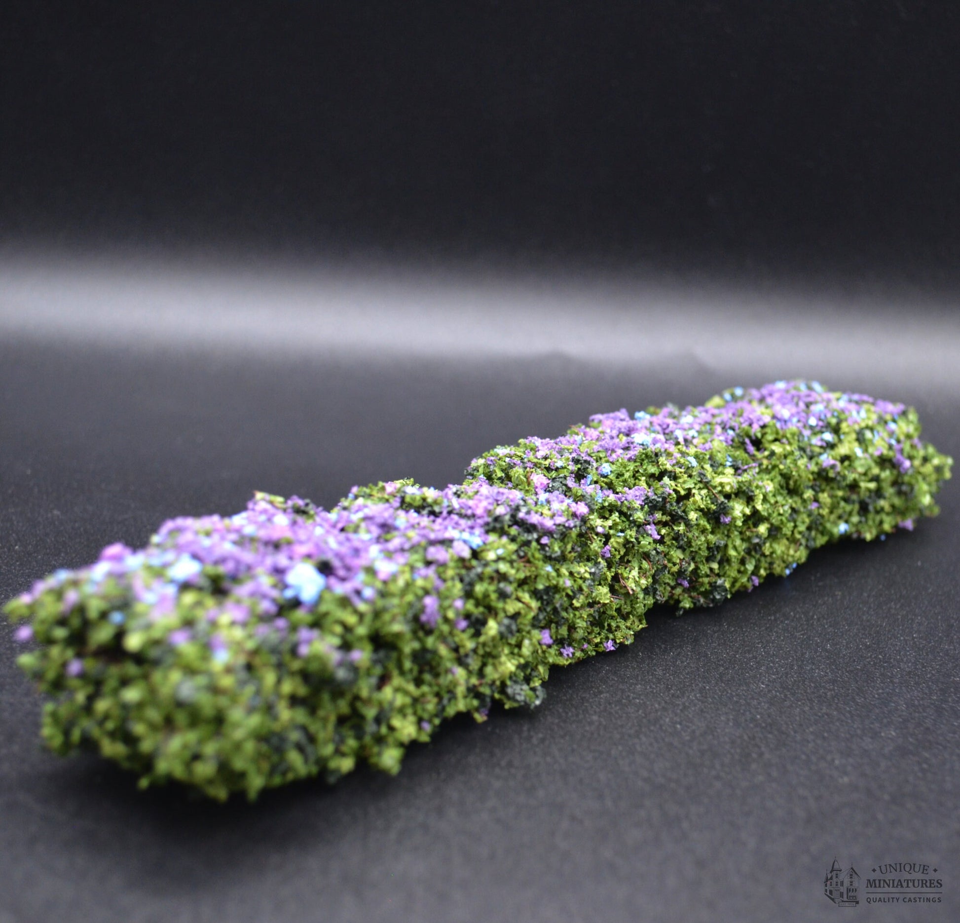 These miniature purple hedges are the perfect accent to any miniature gardenscape. The hedges measures 8" Long x 1 1/4" Tall x 1" Deep and comes in a set of 2.