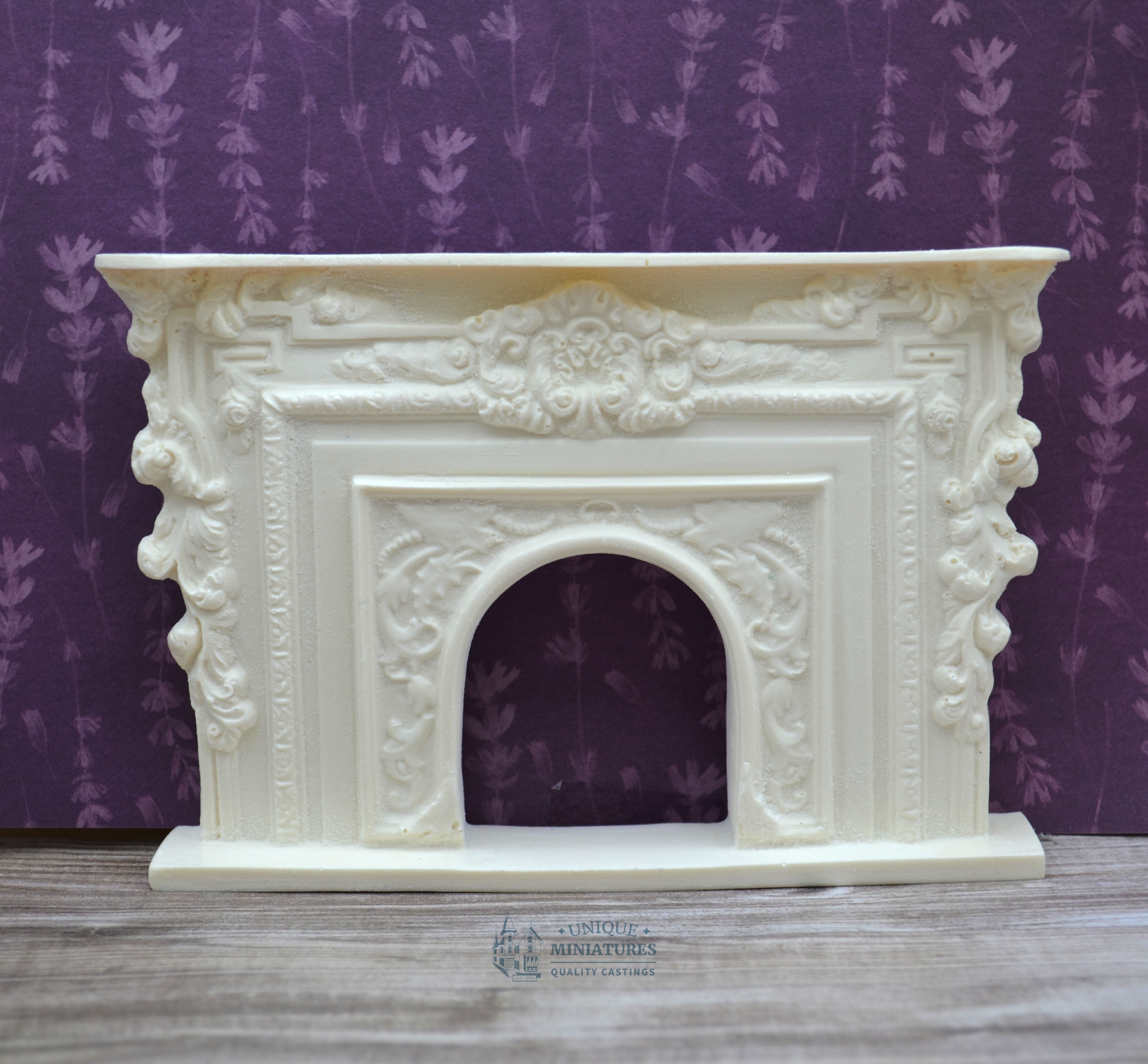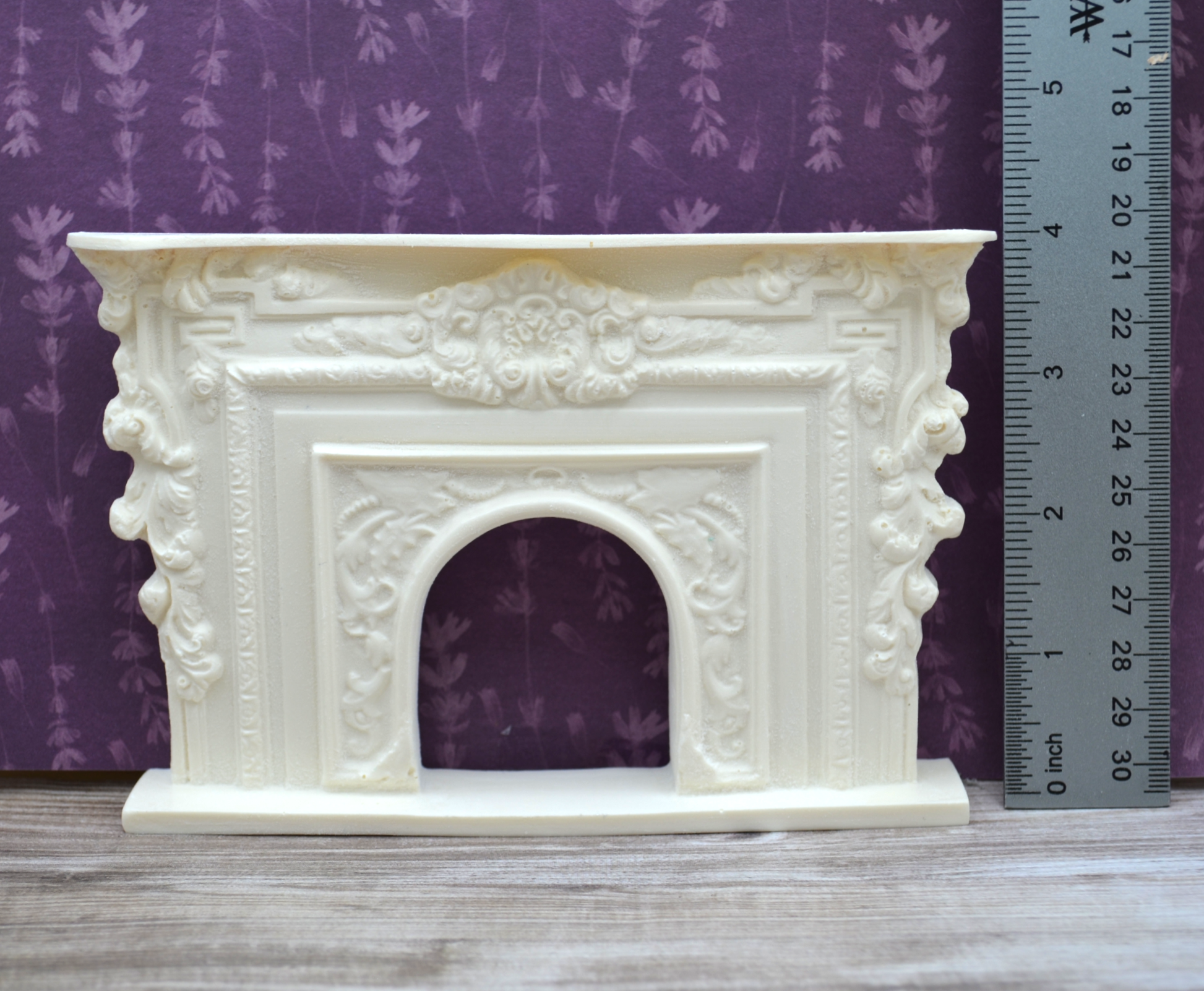Bring warmth and elegance into your dollhouse or miniature with this grand fireplace. The piece measure 6-1/2" W X 4-1/2" H X 7/8" D.