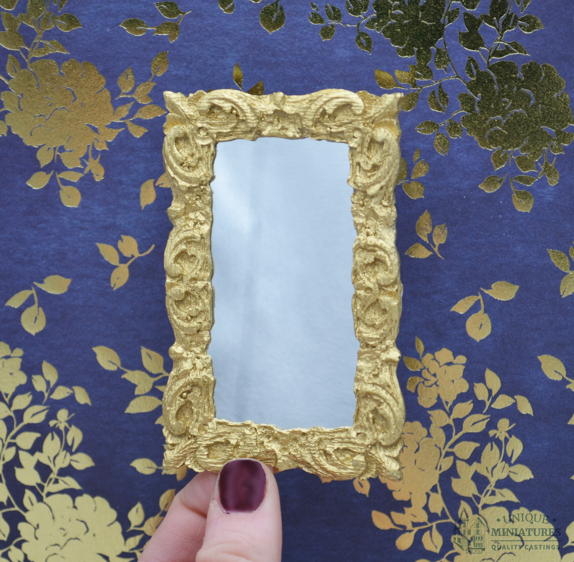 Golden Italian Rococo Mirror | 2 1/2” x 3 3/4” | Ornamentation for Dollhouse Miniatures