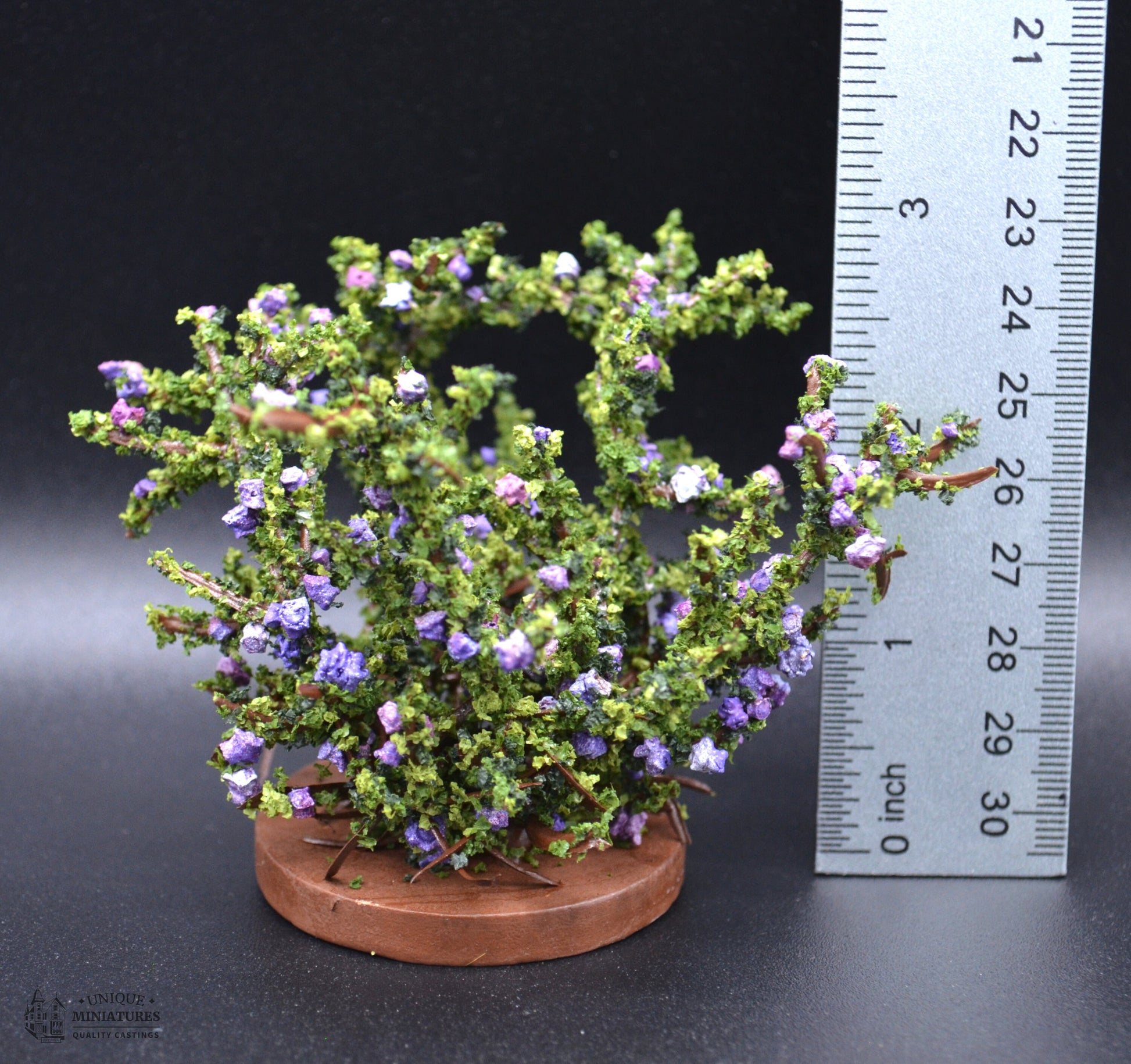 This purple rose bush is the perfect accent to any miniature gardenscape. The bush measures 3"Tall x 3 1/2" wide x 3 1/2" long.