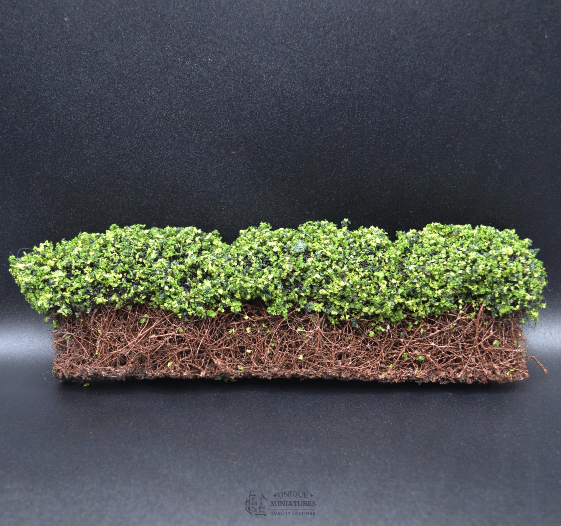 These miniature hedges are the perfect accent to any miniature gardenscape. The hedge measures 8 1/2" Long x 3" Tall x 2" Deep.